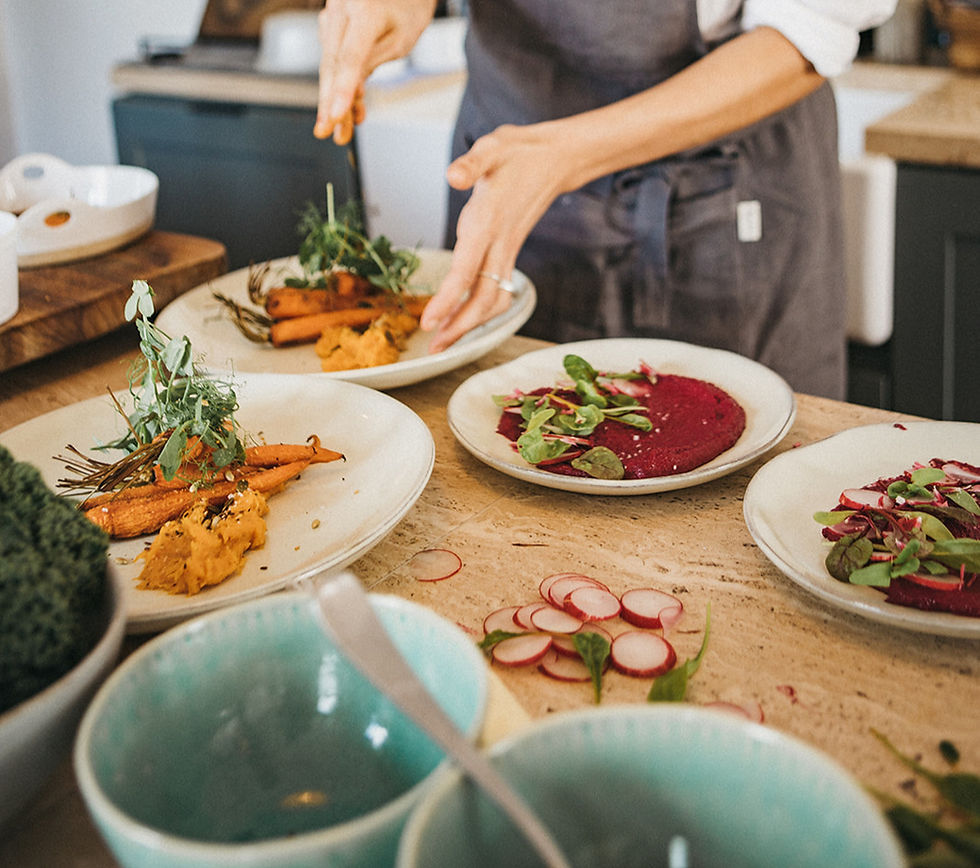 All meals, snacks and non-alcoholic drinks are included during your retreat stay. Menus can be adapted for any intolerances, allergies and special needs. The wine list favours organic, biodynamic and natural wines. The bottles can be ordered directly at the house and paid by card.
